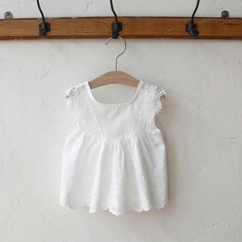 韓國-FLO 無袖蕾絲上衣 - 白色